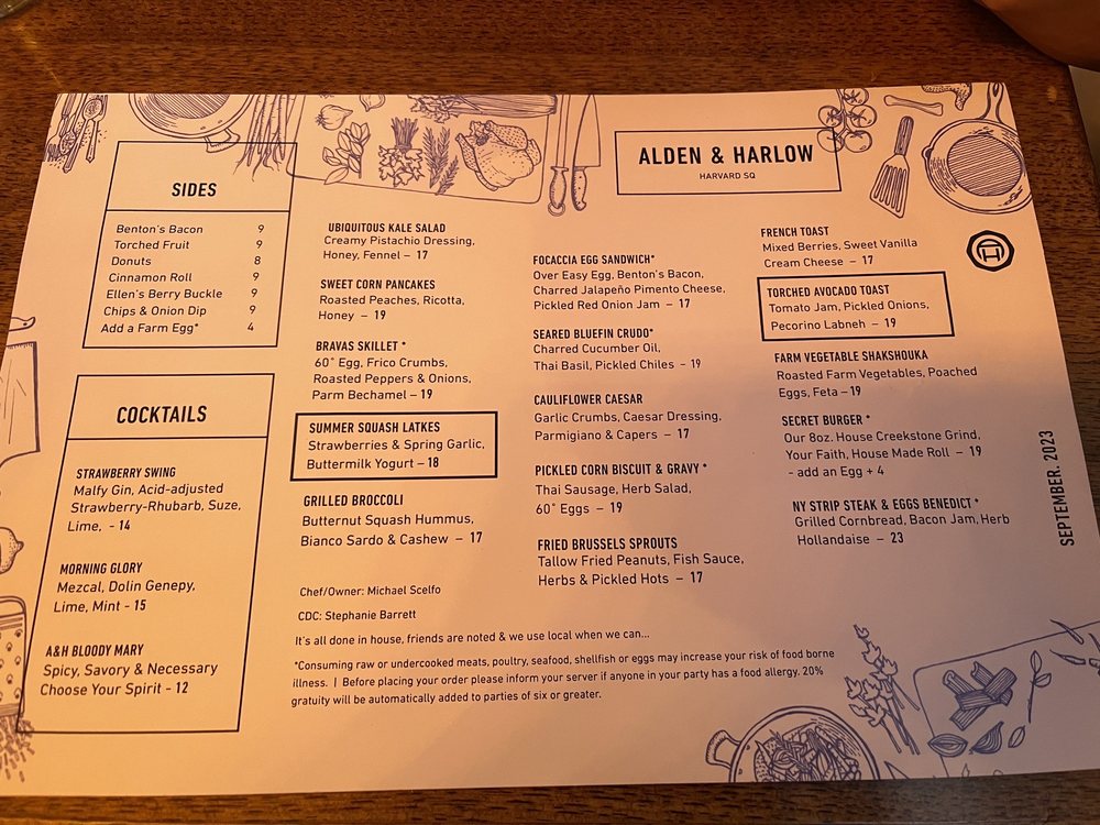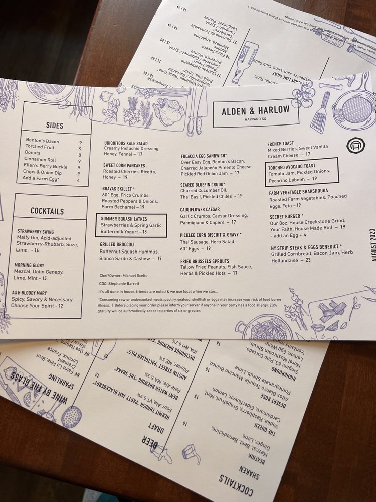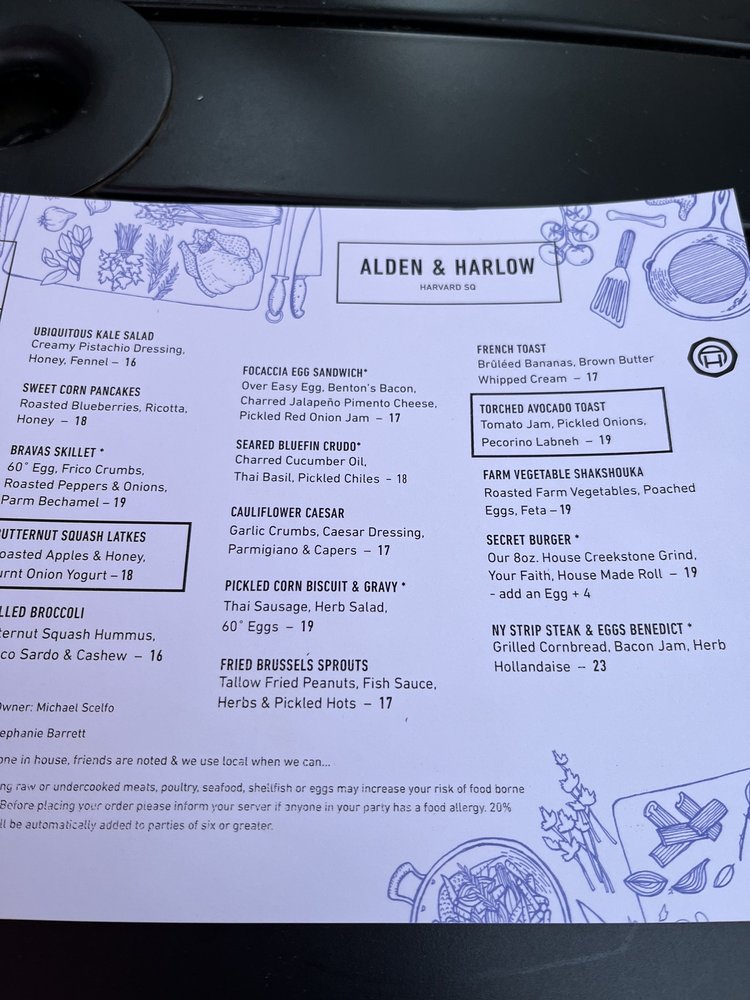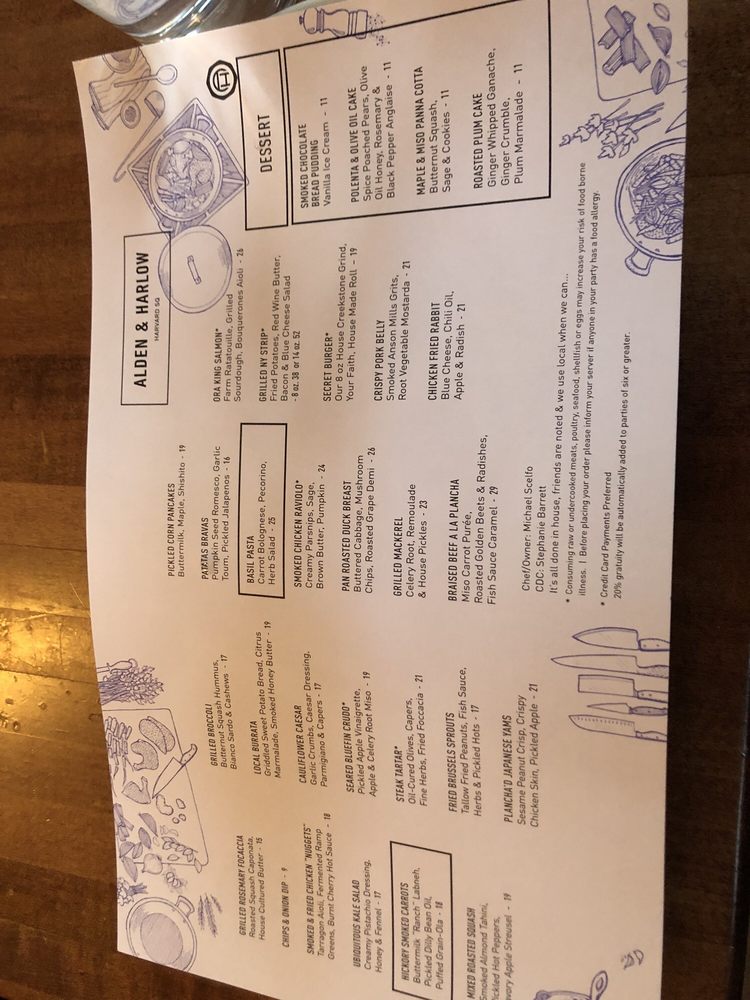 Alden & Harlow Menu